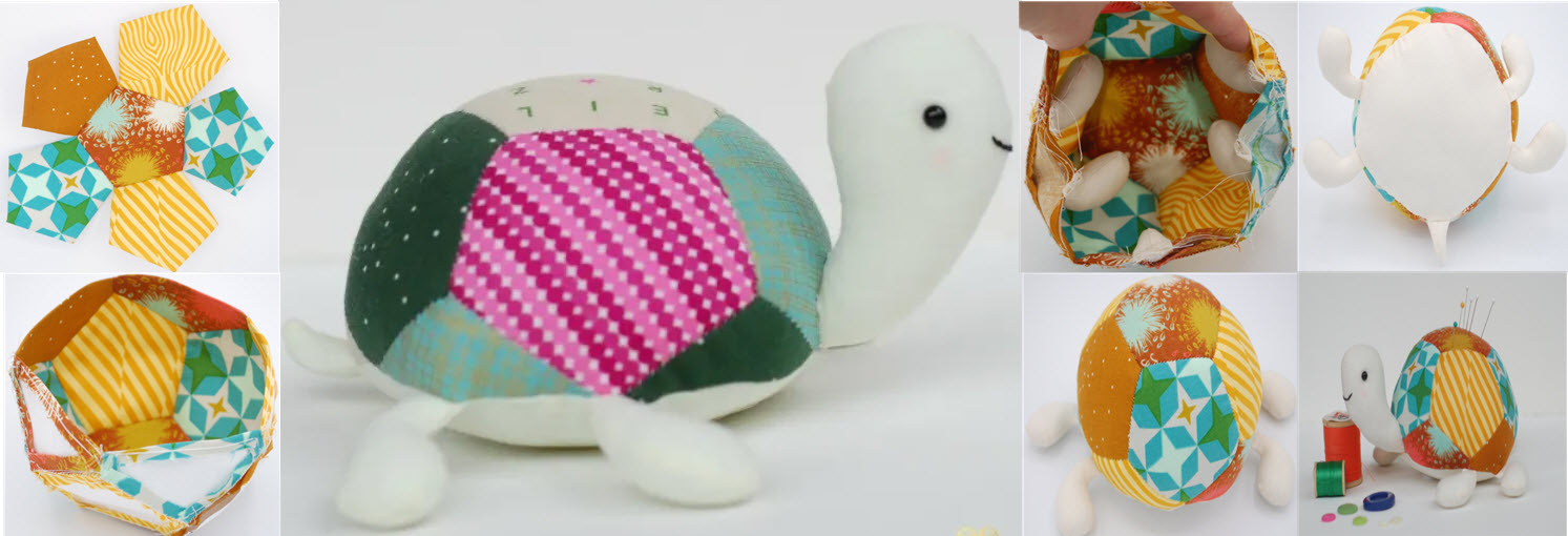 - Fabric of your choice (green for the shell, brown for limbs, and other colors for details)