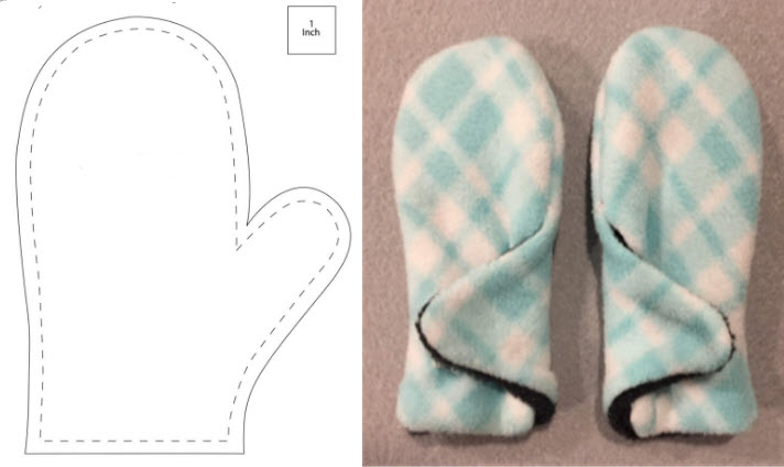 - Reach through the opening and turn the mittens right side out. Push the lining into the outer fabric.