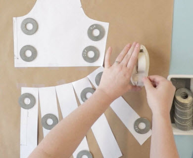 - Pin or tape the original pattern to the work surface to prevent it from shifting.